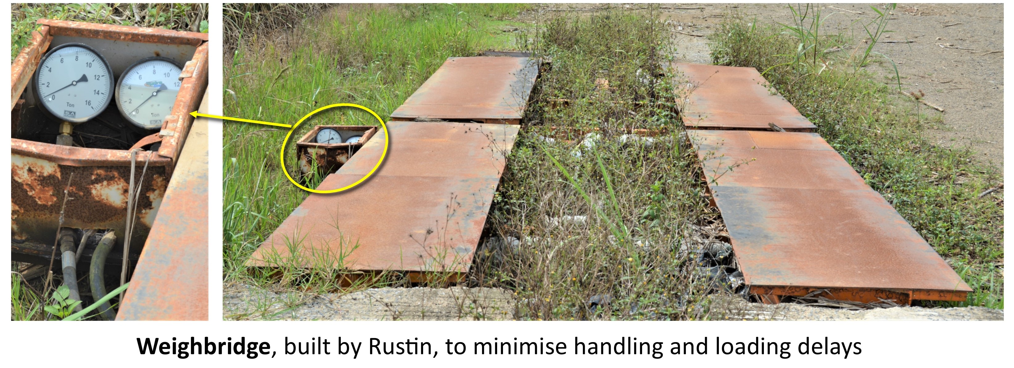 Tractors and side-loading trailers (using only one cable) take the cut-and-stacked cane to the weighbridge. Yes – Rustin built his own weighbridge too! After weighing, the cane is transferred to the waiting trucks with either Rustin’s double wheeled Bell or the crane. From here, it’s an 8km drive to the Umzimkulu mill.