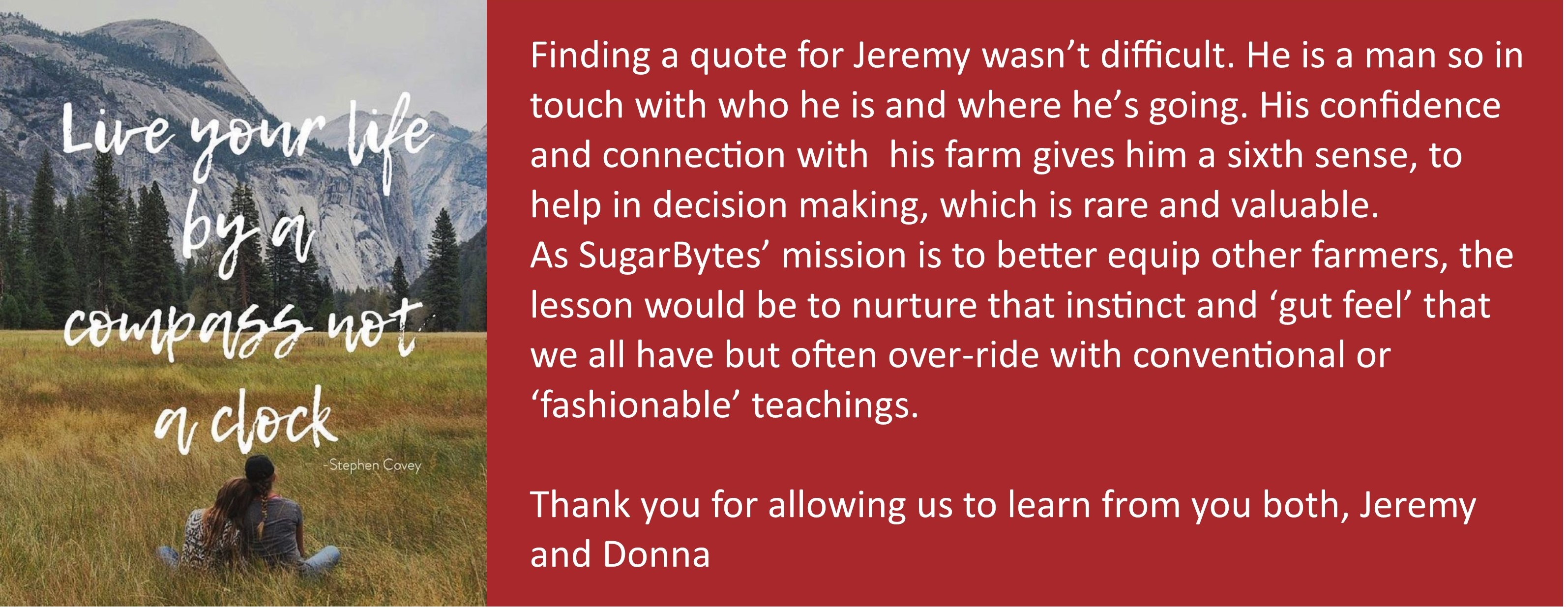 I am sure God created Jeremy Cole directly from the original FARMER mould. Being tall and strong, Jeremy fits the physical career requirements perfectly but it’s his genuine love for growing things and serene competence out in the land that completes the picture. Throw in a few natural disasters and near death experiences and we have a man who not only looks the part, but has lived it, and is so completely FARMER that it’s hard to imagine him being comfortable anywhere else.