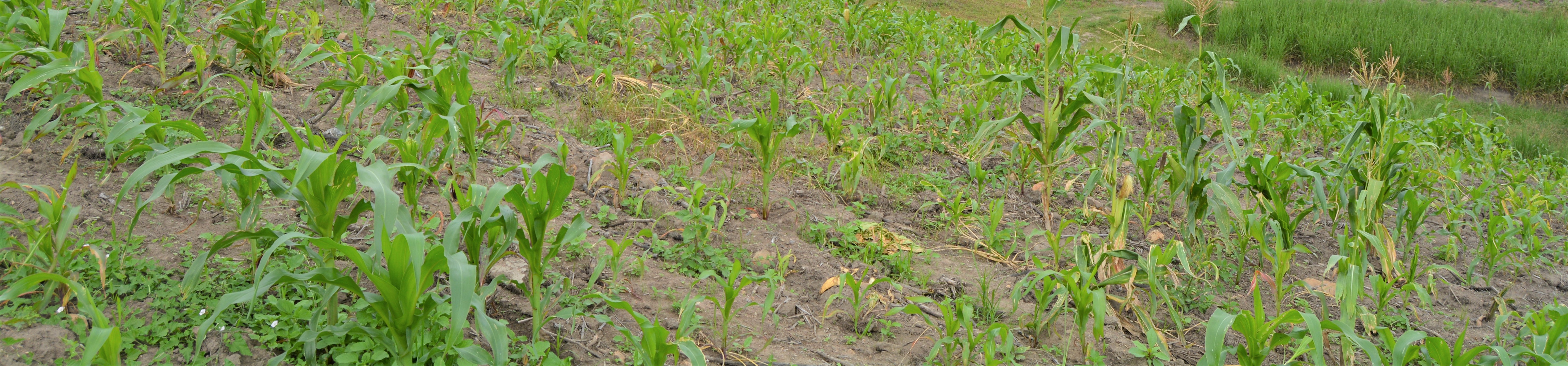 Beans have been planted in the fallow field opposite as it is too steep for the maize planter. Jeremy says that it is a good example of a field that is challenged by aluminium toxicity and will require liming.