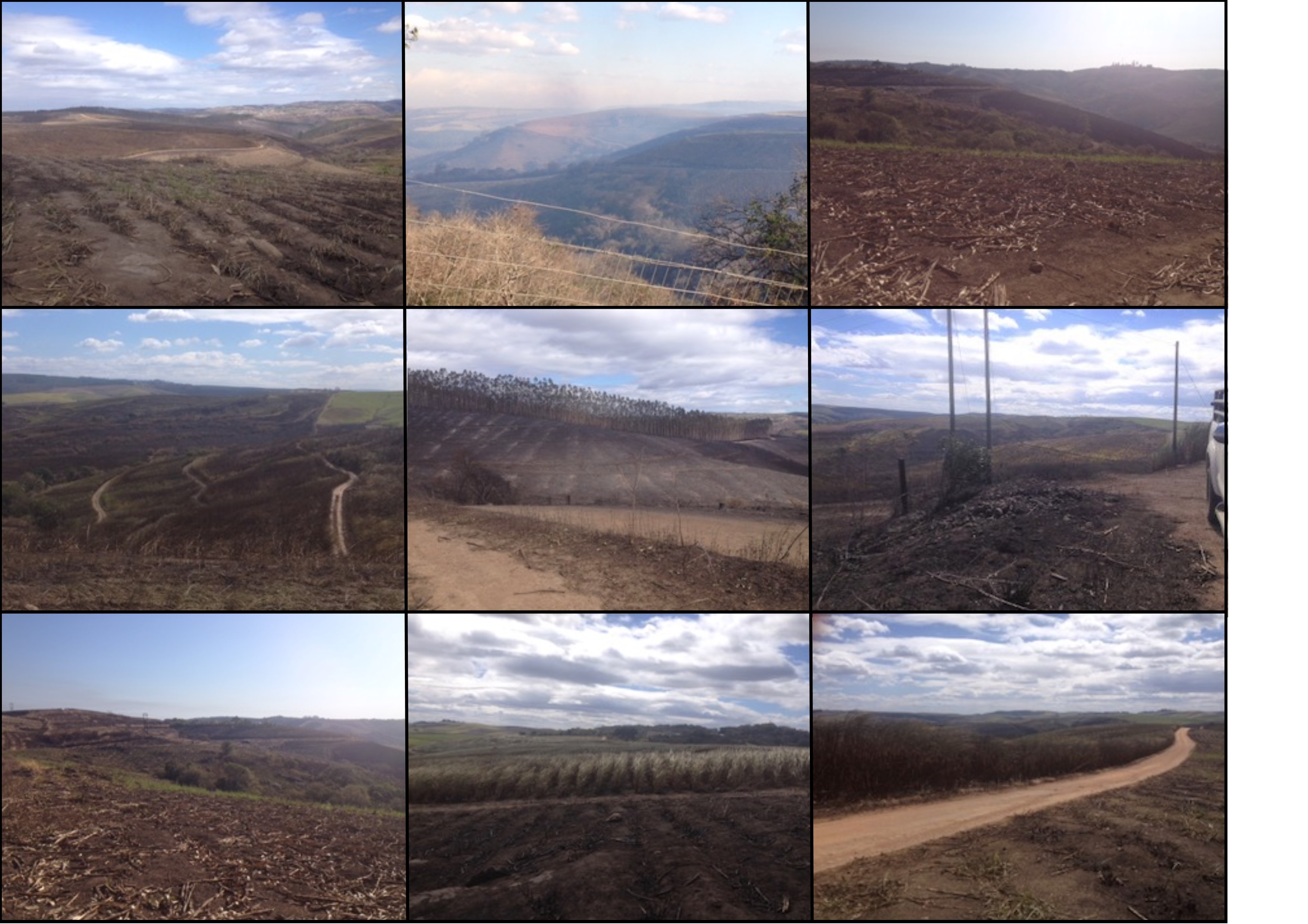 Much of what Jeremy does on Glen Rosa is shaped by a terrifying experience that happened three and a half years ago. The typically dry and windy conditions of August turns farmers across the province into hawks, constantly scanning the horizons in search of that dreaded smudge of smoke. On this day, a wicked westerly had just flared up and Jeremy’s heart sank when he spotted smoke over the neighbouring Sappi forests. He alerted the Sappi team and sped to his boundary by which time 30 hectares of their forest had already burnt. The gum plantation on Glen Rosa’s border had recently been felled and was full of fire fuel. All too soon, the wind was whipping burning logs – literally branches – into Jeremy’s fields. Jeremy couldn’t expect help from the Sappi firefighters as they were fully consumed in their own hell. But neighbours descended from far and wide. Together they tried to back burn but it was futile. The fire was airborne and simply leapt over the corridors they created. When a new fire started 1,6kms away from the main fire, Jeremy retreated to the houses and did what he could to back burn from there. Donna ran into the house, throwing gas bottles into the swimming pool and opening the gates of all animal pens. In the final few minutes she thought about what precious items she should grab from her home but survival was so threatened that knowing her children and animals were safe was all she needed. She ran out and left it all. The animals – horses, dogs, sheep, cattle – had all congregated in the valley, and lay down next to the dam. With God’s grace and more friends than Jeremy knew he had, the fire side-stepped the houses but left every last breath of air thick with suffocating smoke. Not a single animal died and only two people suffered injuries: an escaping buck knocked one of the farmers flying and another woman broke her ankle jumping off a bakkie. All things considered, the casualties were minor. About 130 hectares of cane (70% of the farm) was decimated. They harvested it all in the following three weeks but the fire had been so hot that most of the cane was ash. Even freshly germinating fields were burnt beyond.