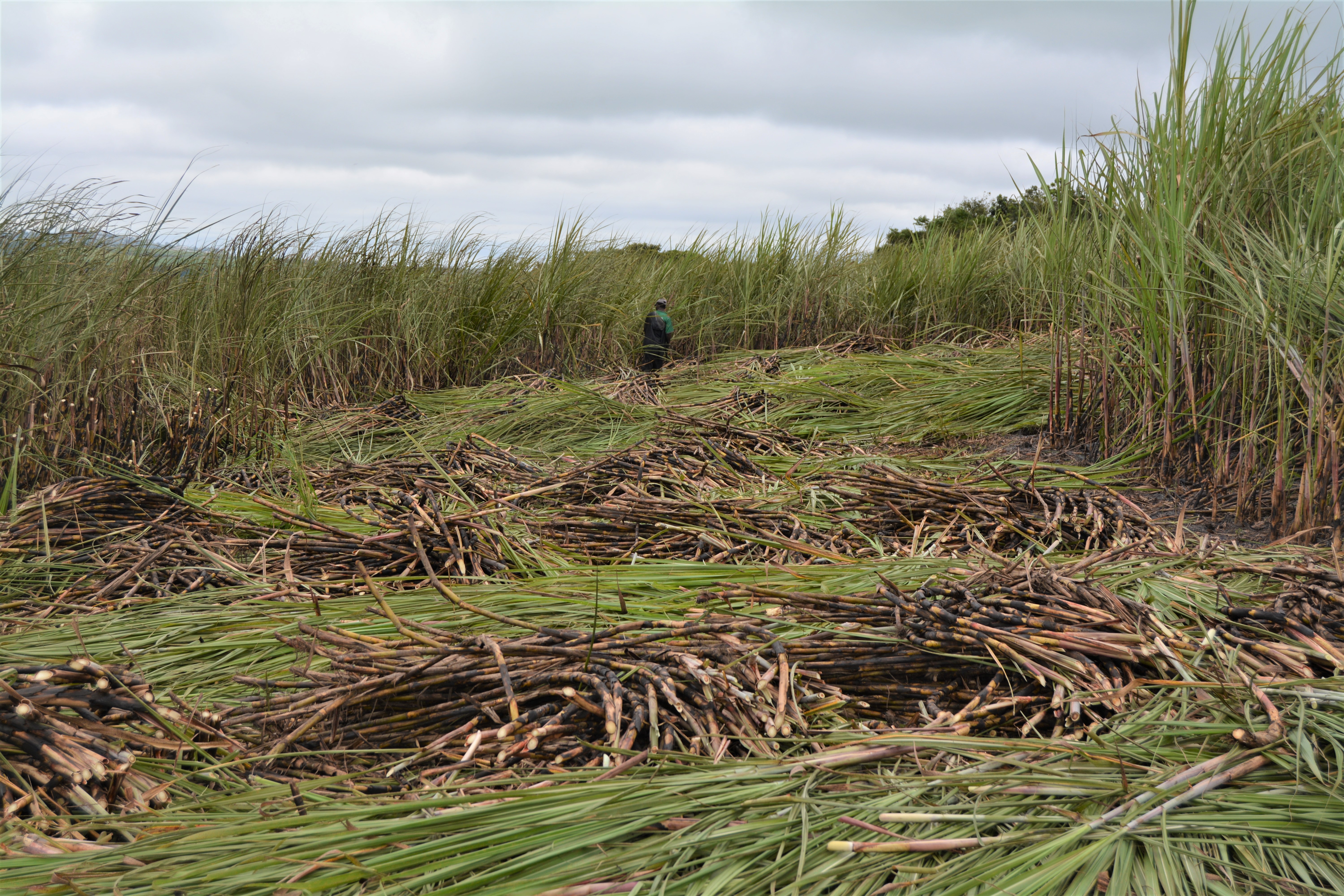 Without artificial ripeners, the slight yellowing of a field is his indicator that a field is ready. Average RV’s are 12,5% but, in Sept / Oct it often gets up to 15 or 16%. If he could, he’d trash his fields but it is already hard enough to cut the lodged cane. A cool fire cleans it up just enough to allow access. In one carry over harvest, the cutters had to cut the cane sticks in half; Joe Nkala came to measure them – the 29-month-old N51 was 3,6 – 4,2m long. The result was 202 tonnes/hectare. Can you imagine green harvesting that! As it was, the tractors could not get access to the field because the stacks were so close. Bumper crop problems …