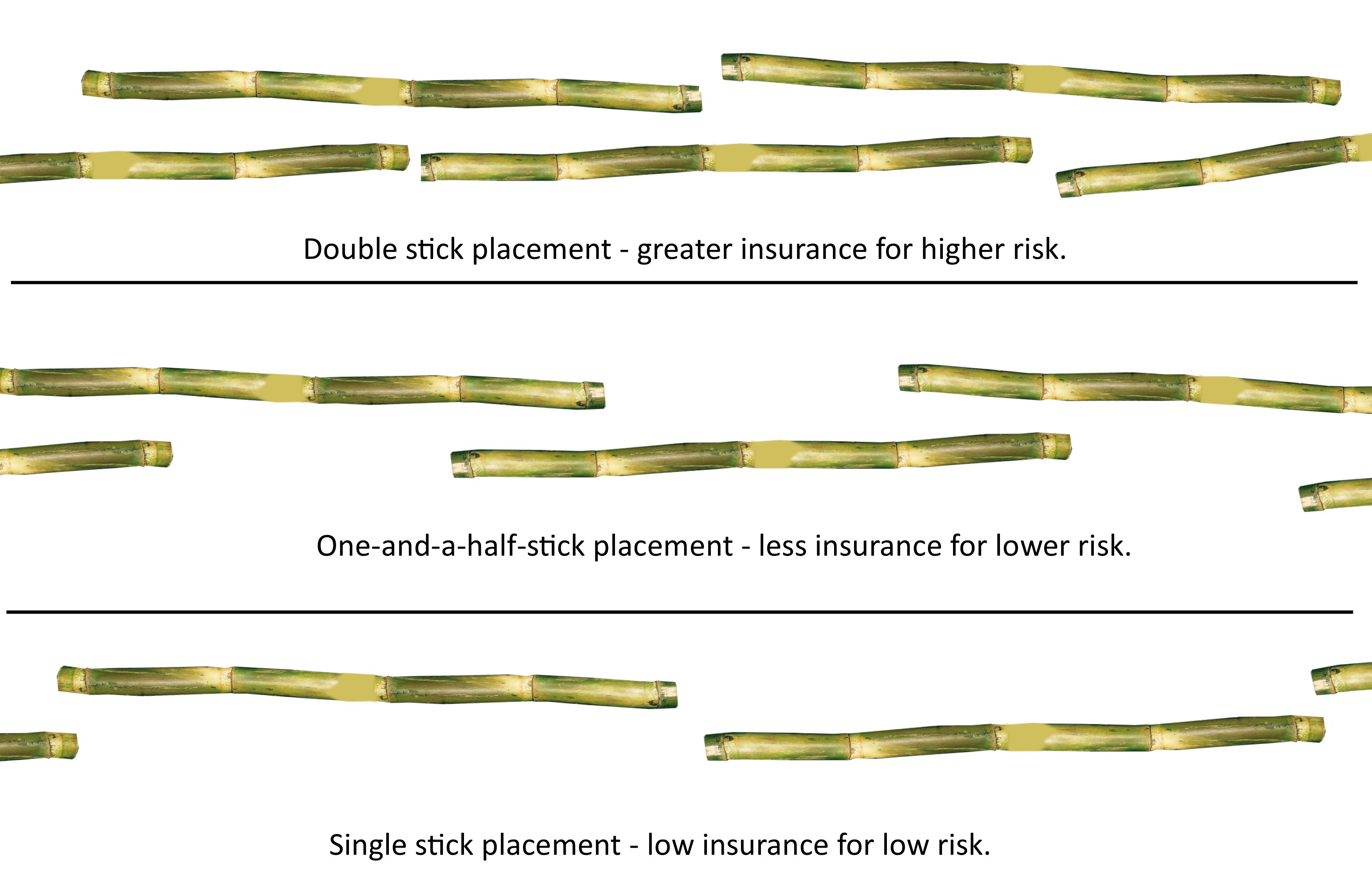 Thulas gets heat treated speedlings from Sezela Nursery. He plants these close to the homestead so that he can give them the water and attention they need. At around 18 months, they are used as seedcane. (The billets are spaced according to the ‘gapping risk) … Thulas hates gapping and spaces the billets according to the risk they pose: good quality seedcane, with a low risk is spaced further apart than a lower quality, that requires a measure of insurance against gapping.