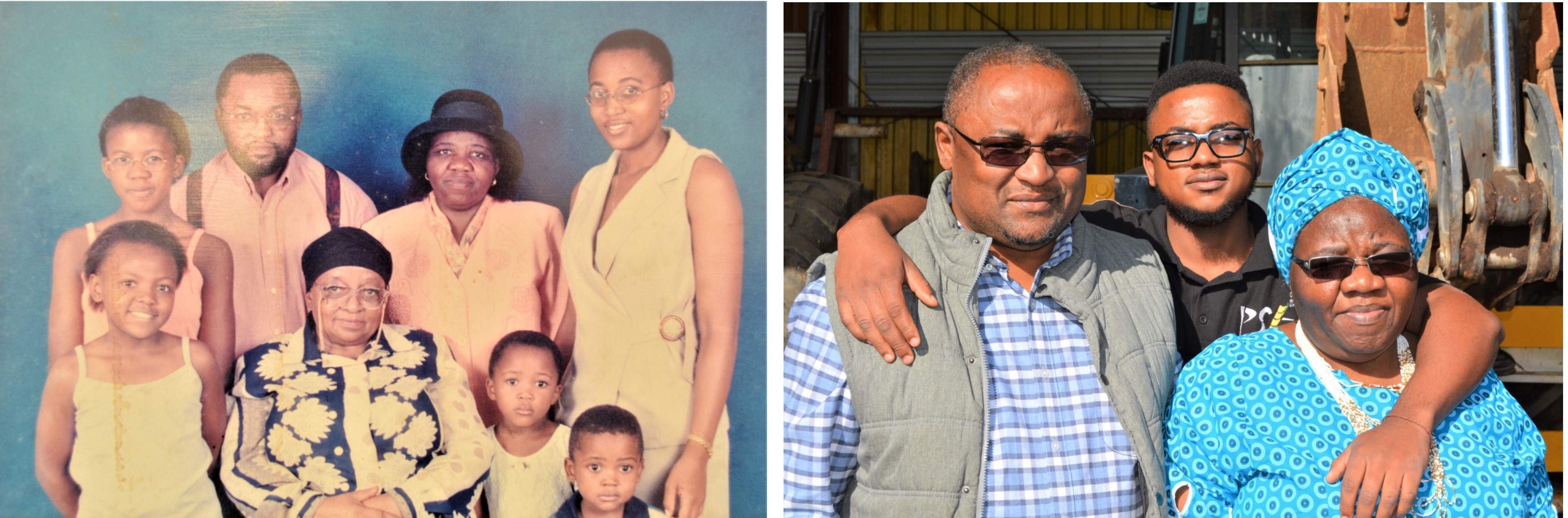 On the left is the Ngidi family, back in the late 90’s. Back row: Zethu, Thulas, Valentine and Nokuthula. Front row: Sthokozile, Grandmother- Thulas Mother, Sanelisiwe, XXXX and Baby Thula. The photo on the right pictures Thulas, no-longer-a-baby-Thula, and Valentine today.