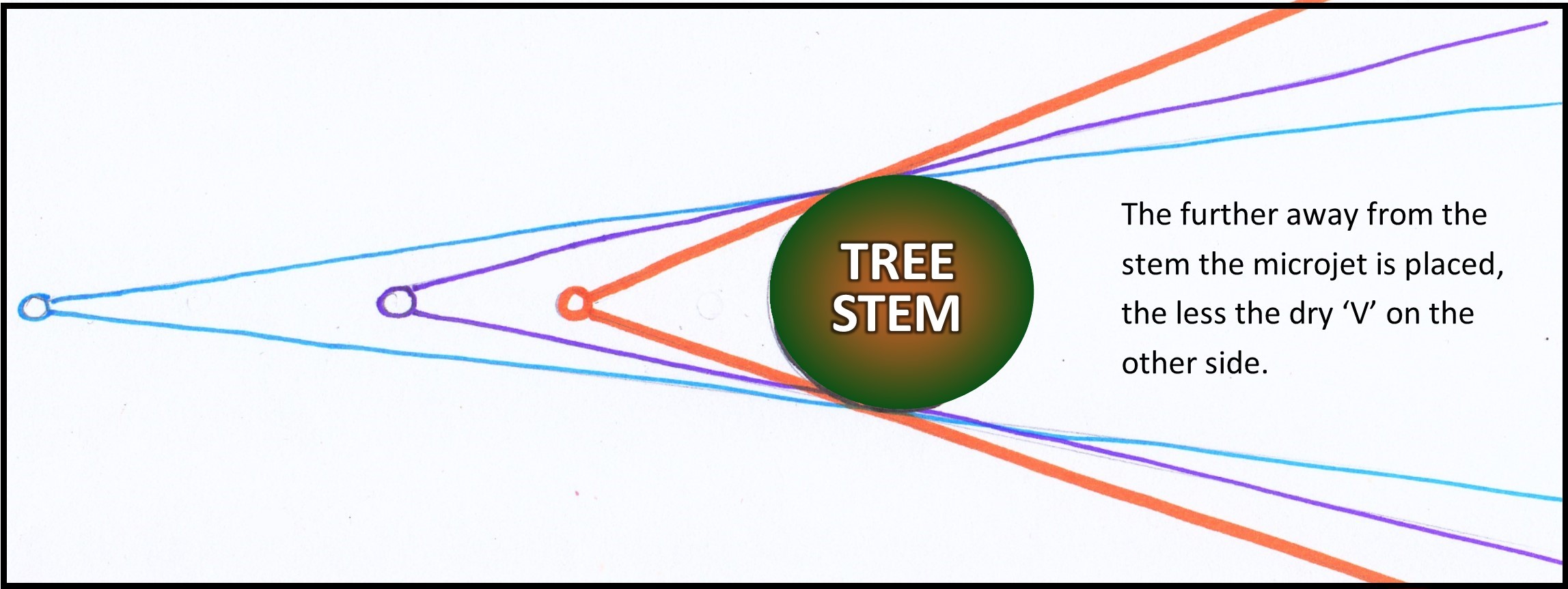 • When using microjets, always make sure that the head is at least 400mm away from the stem of the tree to avoid damage and the size of the dry V on the other side of the tree.