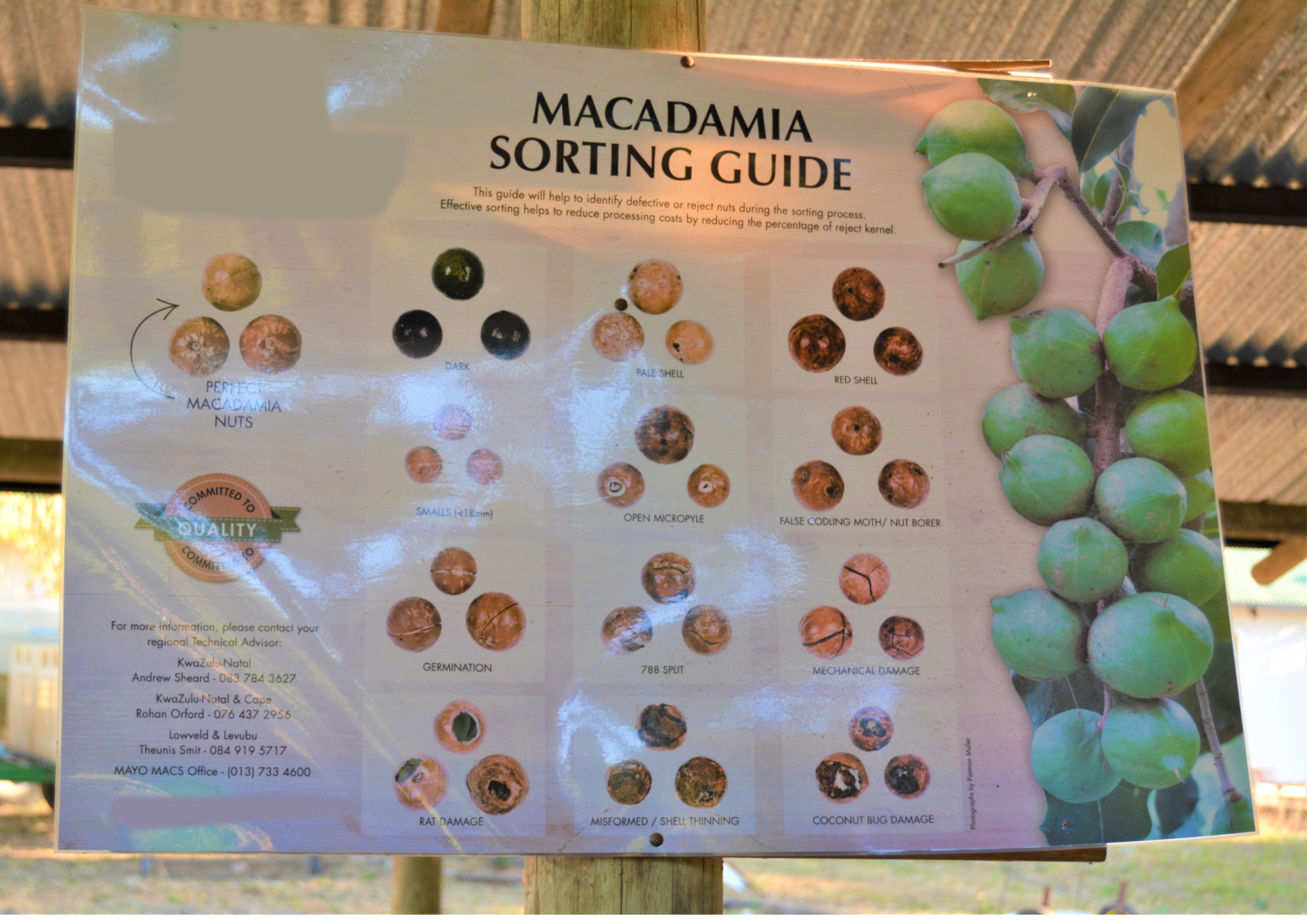On the table, Jaff is after borer holes, darks (black), immature (burst open), mechanical damage (broken by dehusker), mould and undersized nuts, as per the poster below: