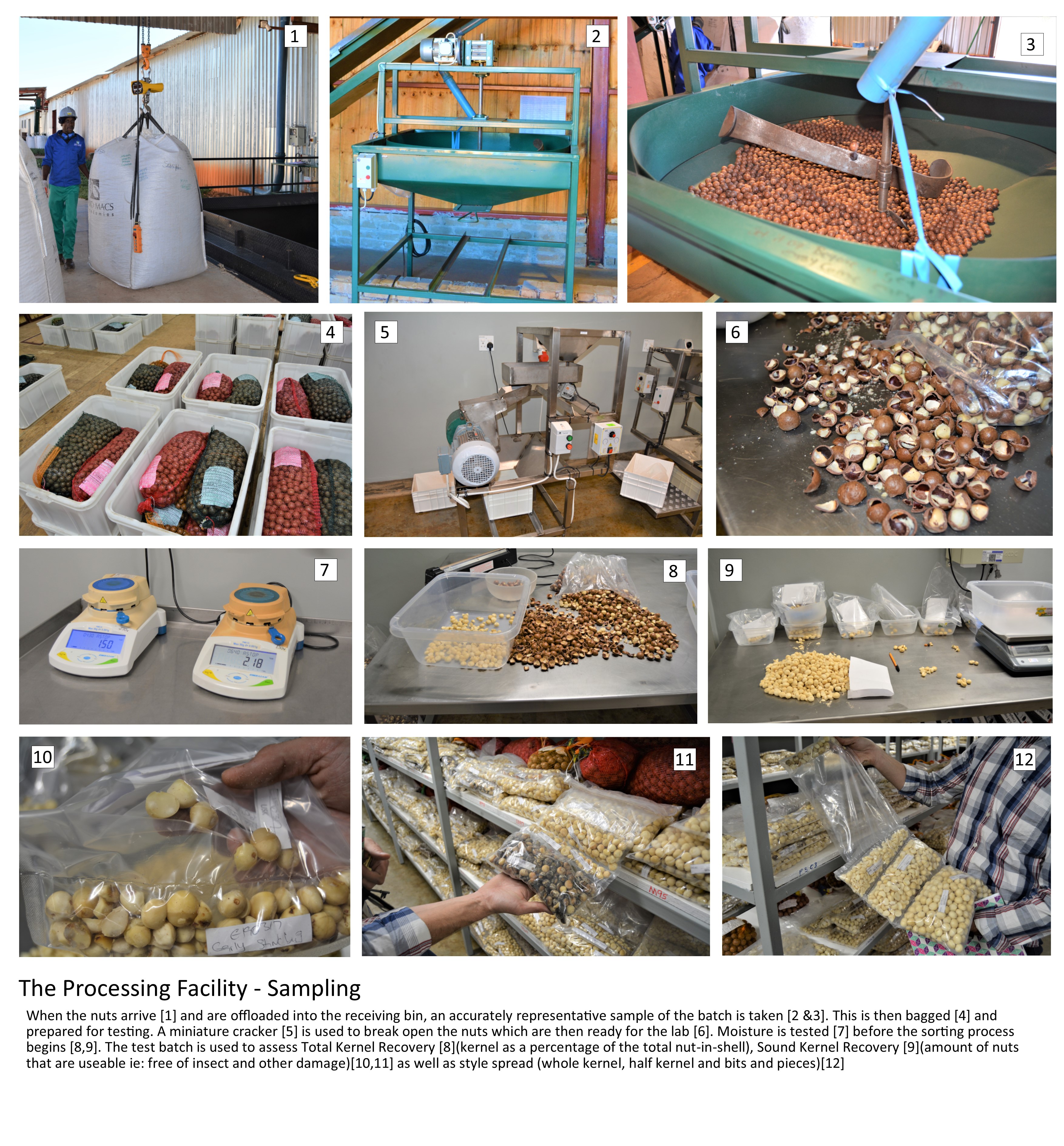 • Moisture content of nuts received is important as it affects how much supplementary drying the processing plant must do.