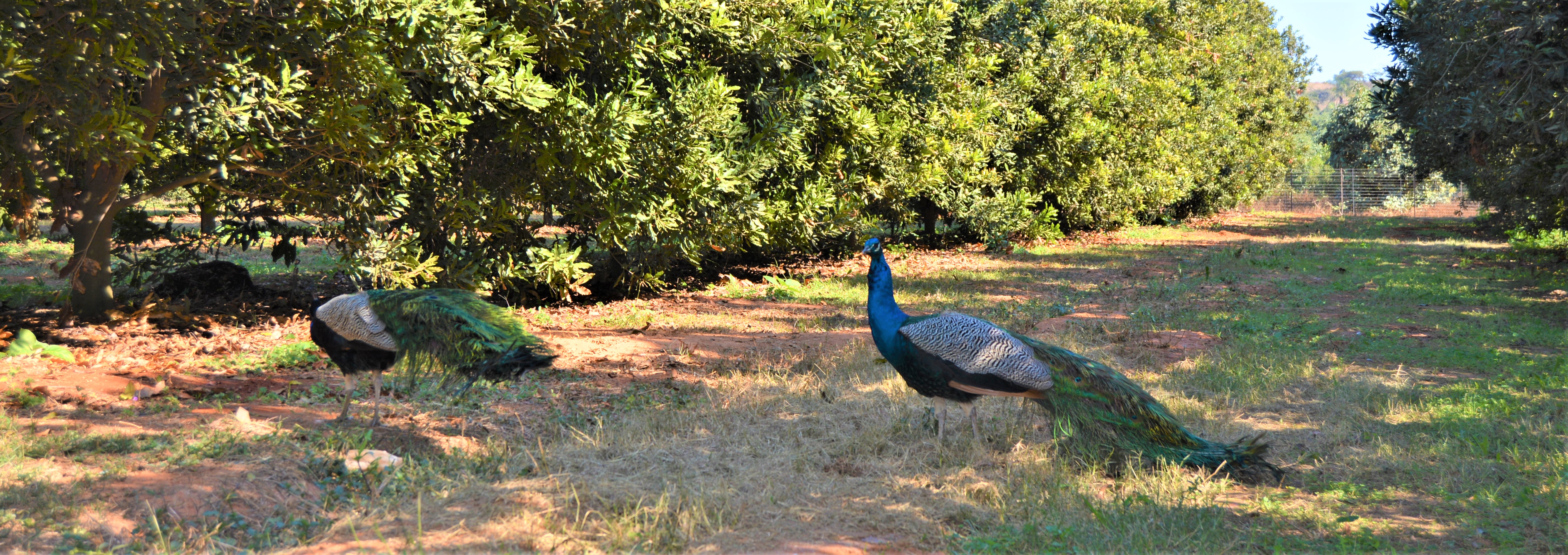 And now for the big reveal of what I suspect might be Jaff’s secret weapon in pest management … a bejewelled army of peacocks; Jaff says they belong to his wife but they are very effective insect eaters and do a wonderful job in the orchards – so much so that they now form an integral part of his pest management plan. The 55-odd finely feathered fowls do a great job of cleaning the orchards of nymphs and larvae, quite literally nipping any infestations in the butt!