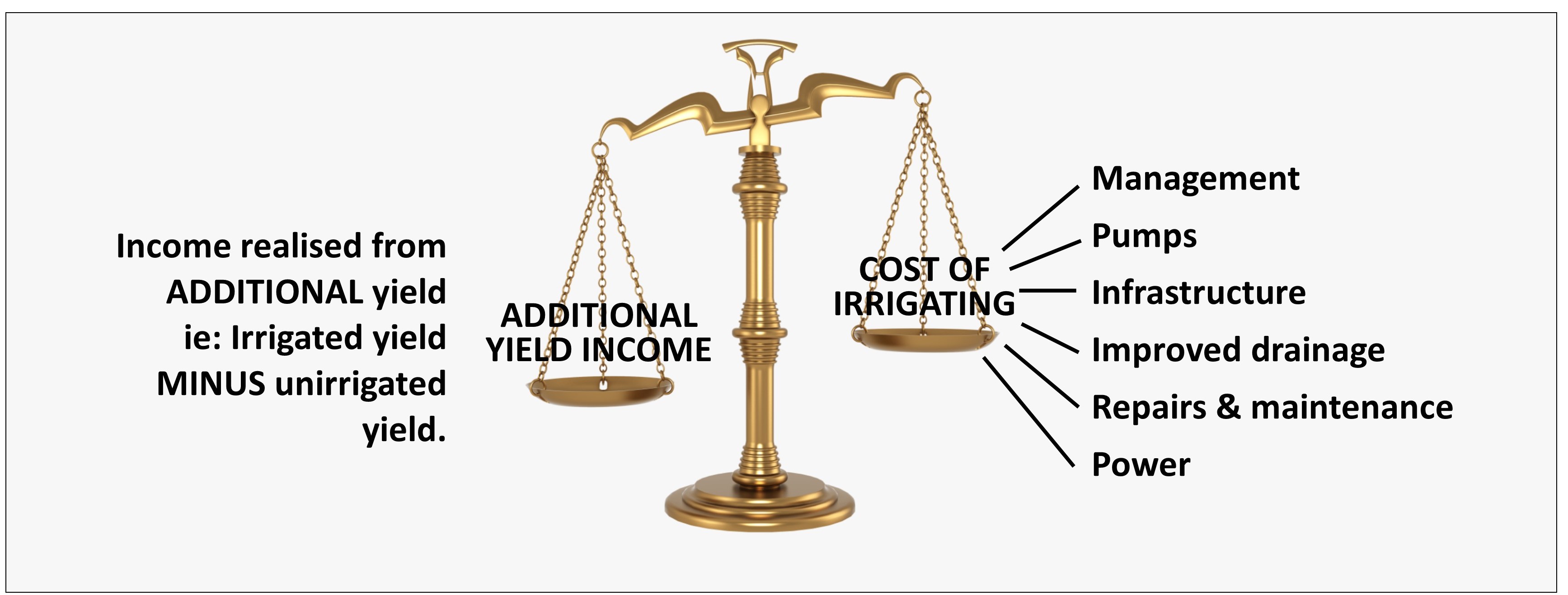 Until you are sure that the income from the ADDITIONAL yield (as a result of irrigation) is higher than the cost of that irrigation, it is not a wise investment.