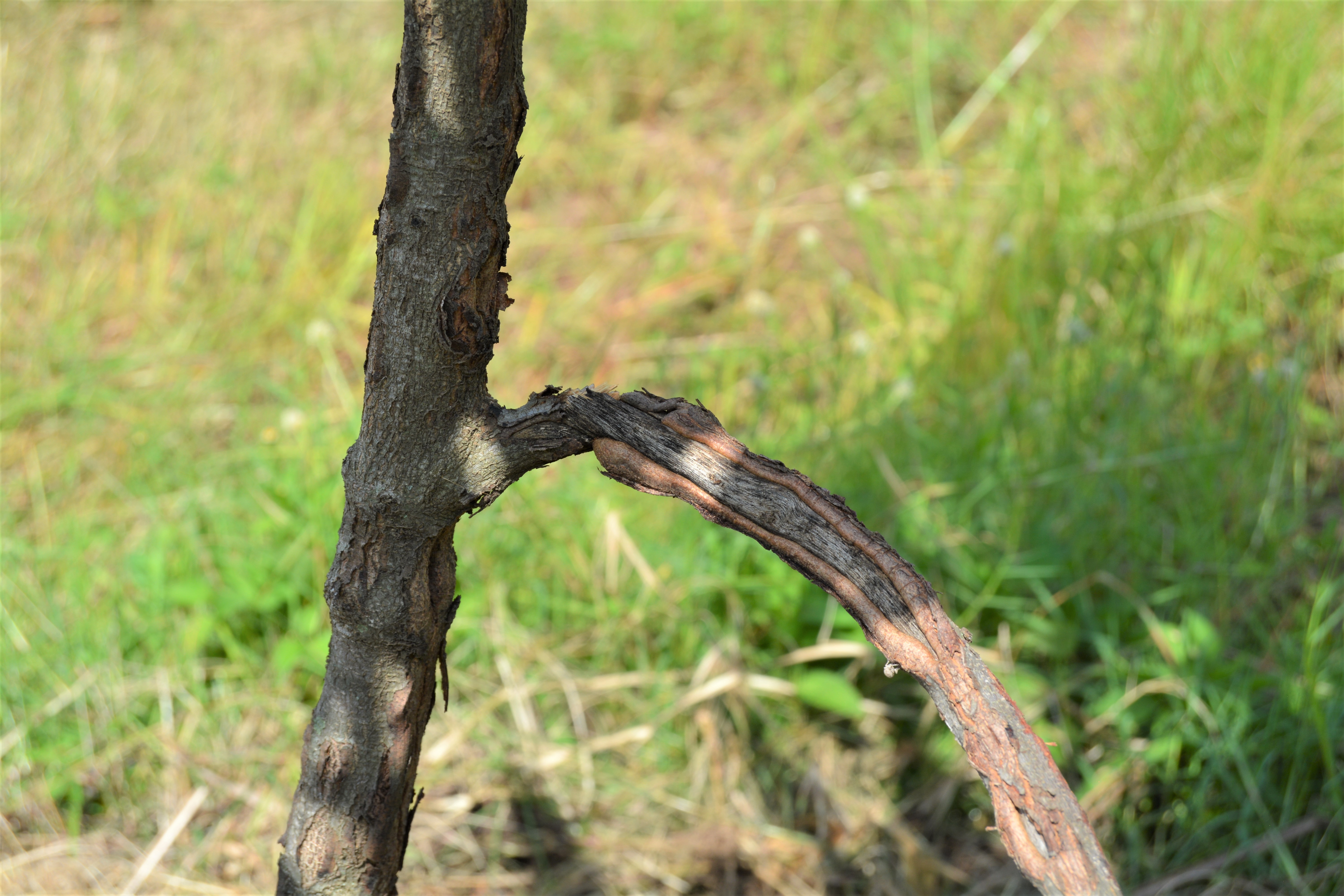 An illustration of how buck, sharpening their horns, have damaged this young tree.