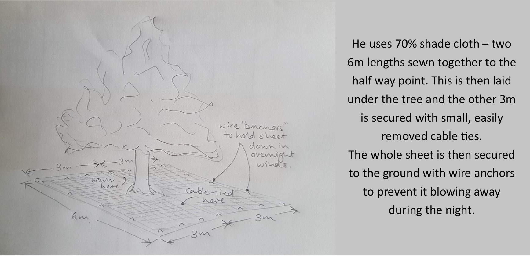 • The scouting team prepares the relevant sites the day before by laying sheeting under the designated trees. The trees and rows are marked so that locating them in the dark is easy.