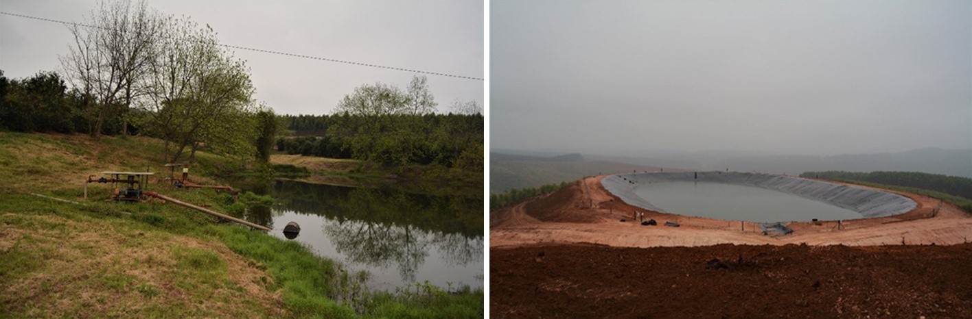 Two (of many) holding dams. The one on the right is newly built and rests on top of the farm, ready to supply the 180 hectares being developed below. When Jaff filled the 20 000 cubic litres it LEAKED! They had to empty it and redo the 3-way welds.