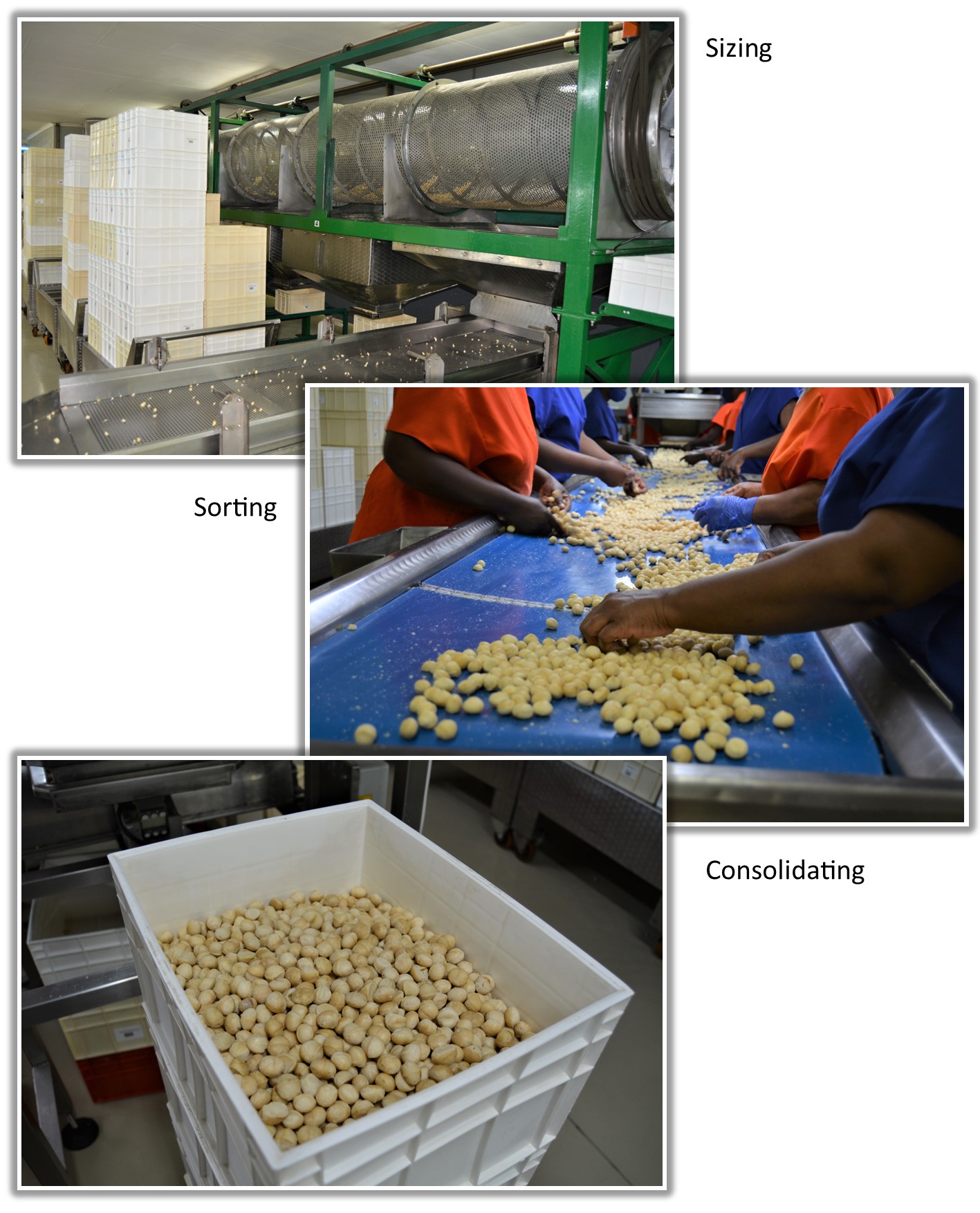 As explained by Jaff, there is still a huge market for macs but the Chinese supply changed the quality benchmark for everyone. Basically, the market we serve is now fussier, demanding better quality and bigger sizes. Size is based on the number of nuts in a kilogramme. The market is gradually demanding fewer nuts per kg. Over 22mm = 150 nuts/kg minimum. Current demands are closer to 140 nuts per kg minimum.