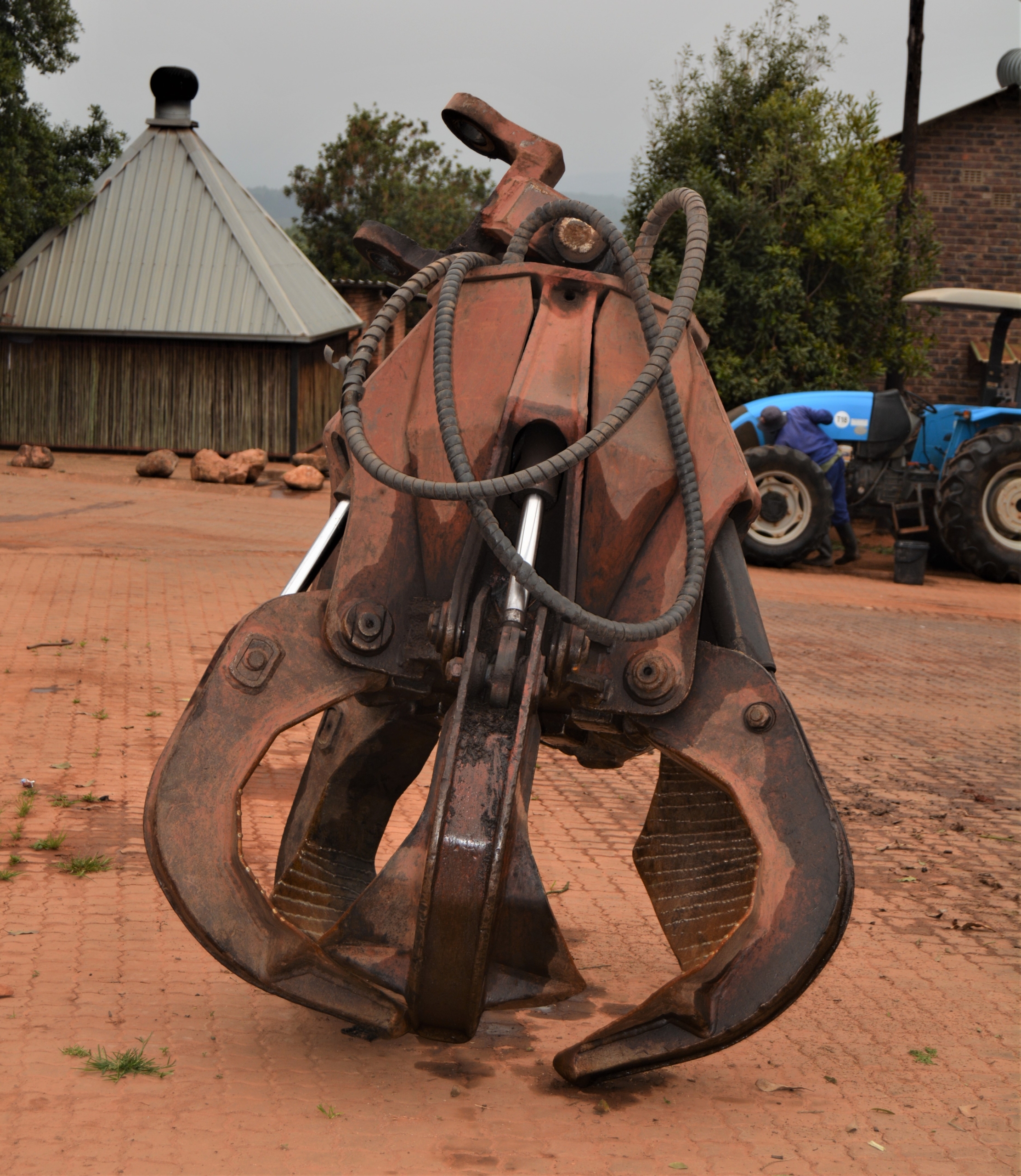 Much of the land Jaff develops to macs has previously been timber plantations. This excavator attachment is very handy to stack stumps, ready for burning.