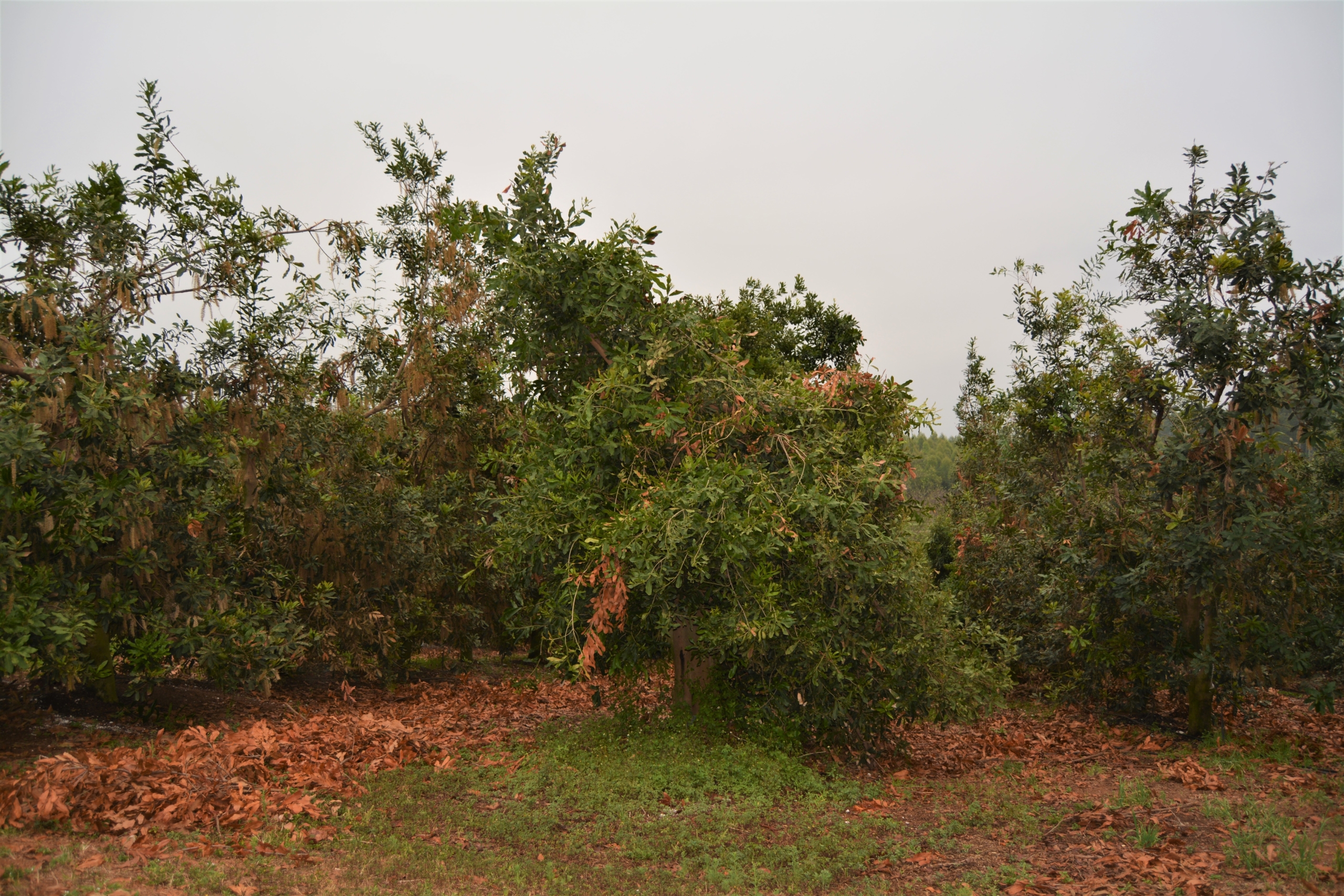 The new development currently being rolled out is being planted with A4, 816, Nelmak 2 and Beaumonts where it is steep. The Nelmak 2s are included in response to the Chinese demand for bigger nuts.
