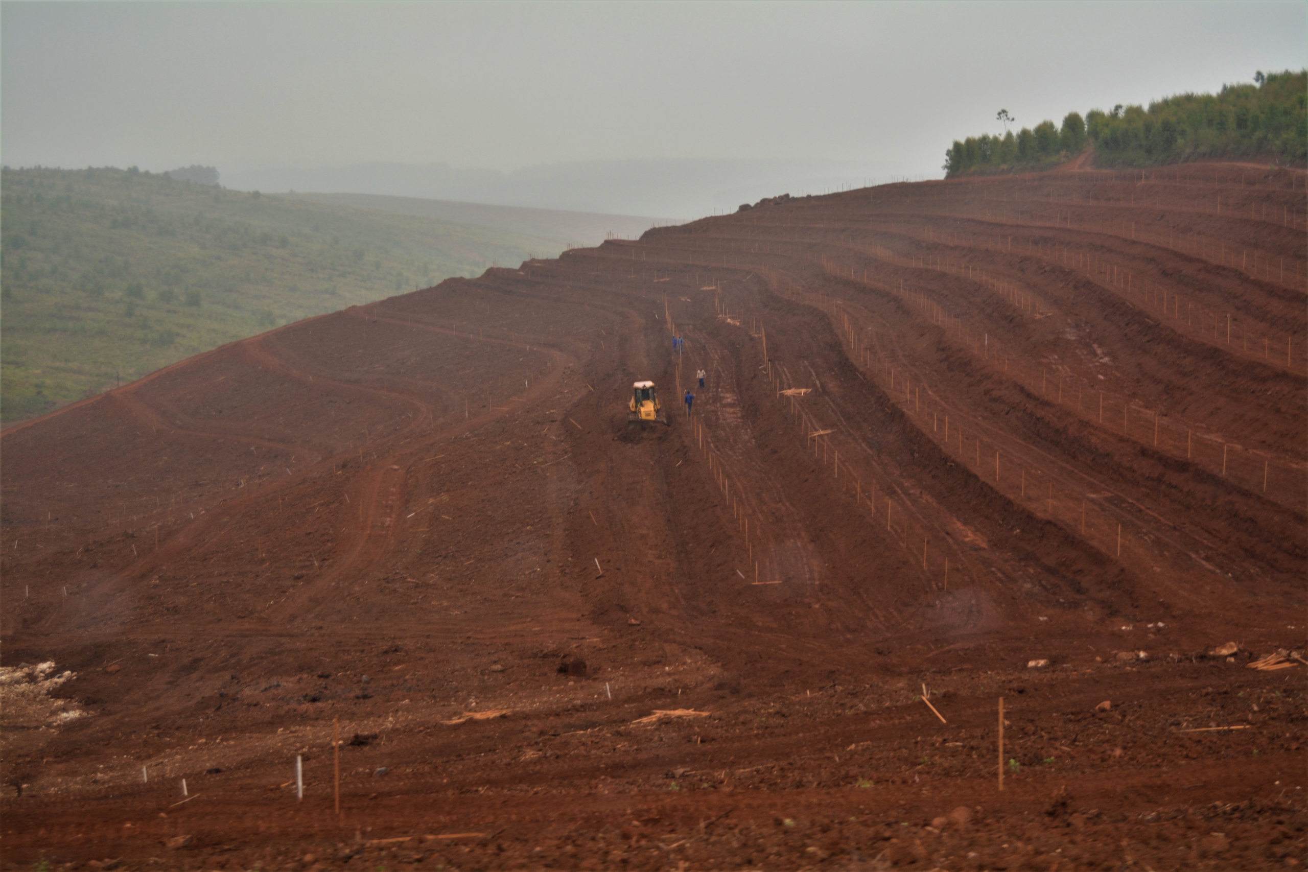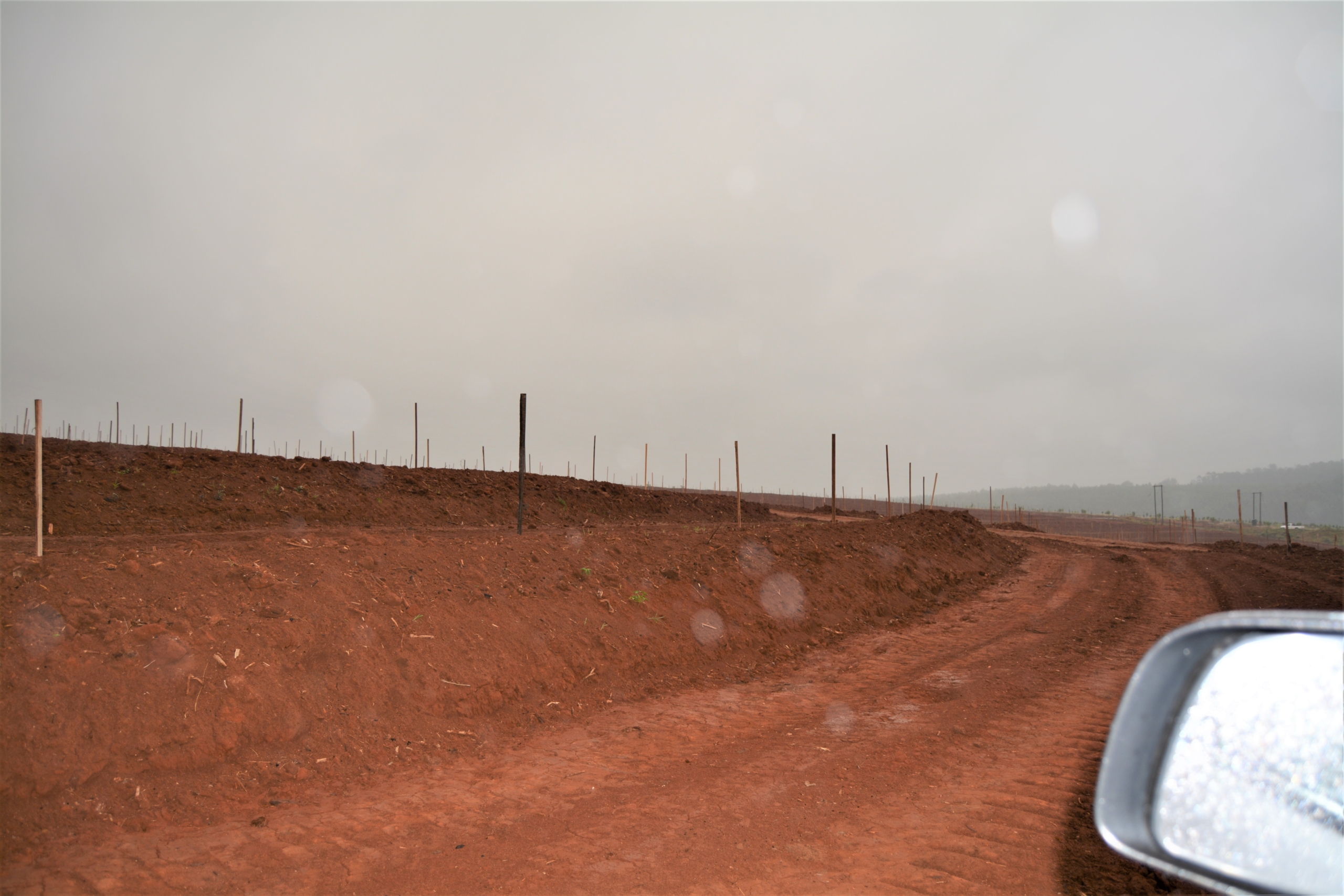 Avos planted on a gradient get, what Jaff’s manager refers to as, a ‘ridge on its back’. When working on a slope like this, there’s no point in creating ridges because terraces work the same way. The dozer cuts the row and pushes the soil over to the edge, creating the ‘ridge on its back’. The tree is planted into this soft soil.