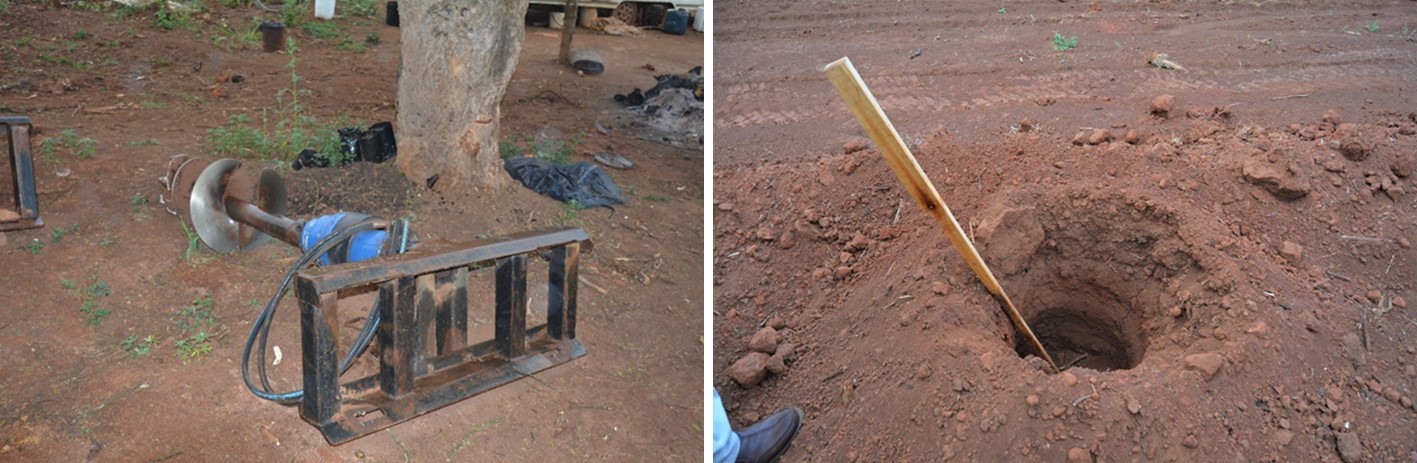 Bobcats with auger attachments are used to drill 320mm diameter, 800mm deep holes.