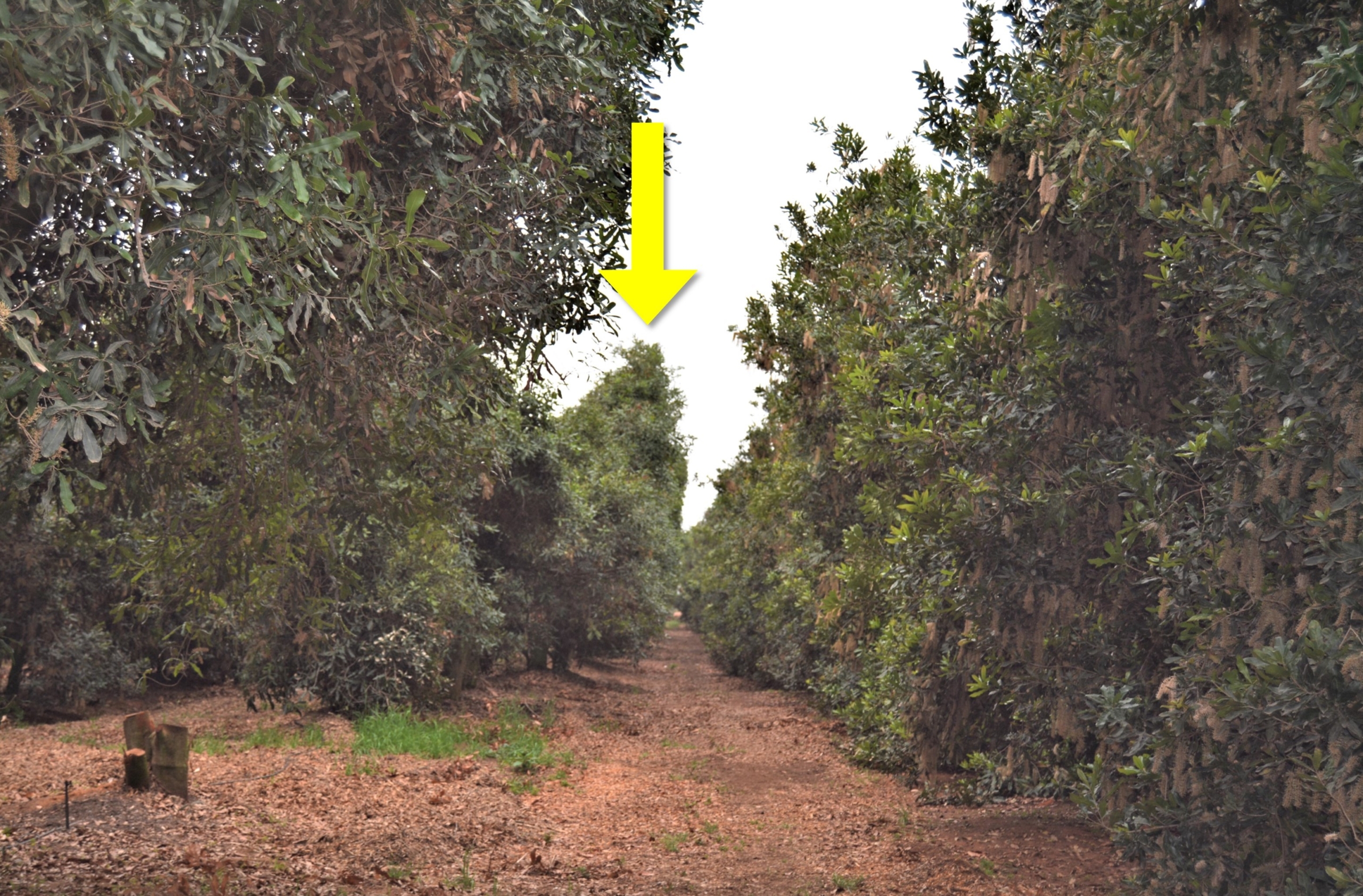 This is where we encounter, what Jaff believes to be, the second biggest issue mac farmers are currently facing; trees that are too big to spray effectively. For every farm, it’s a unique size (and shape) depending on equipment and slopes but it is essential that you ‘prune to fit’.