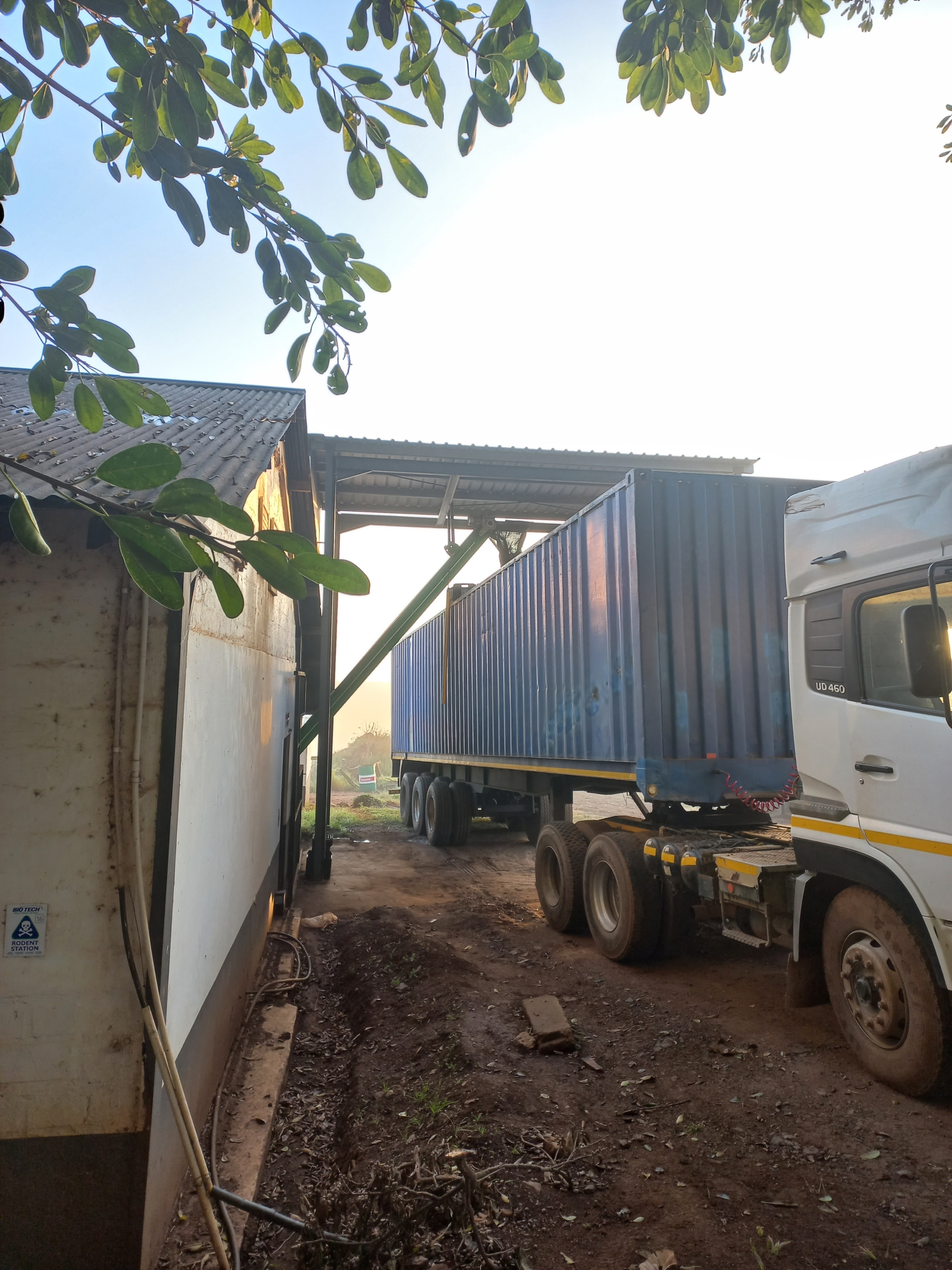 As Jaff supplies processor in Mpumalanga, his deliveries are slightly different to most mac farmers; after drying, the nuts are sorted again and then placed into another hopper which weighs them and then releases them into a large, 24-tonne container truck, which makes the trip to Mpumalanga. It takes 2 days to fill this container.