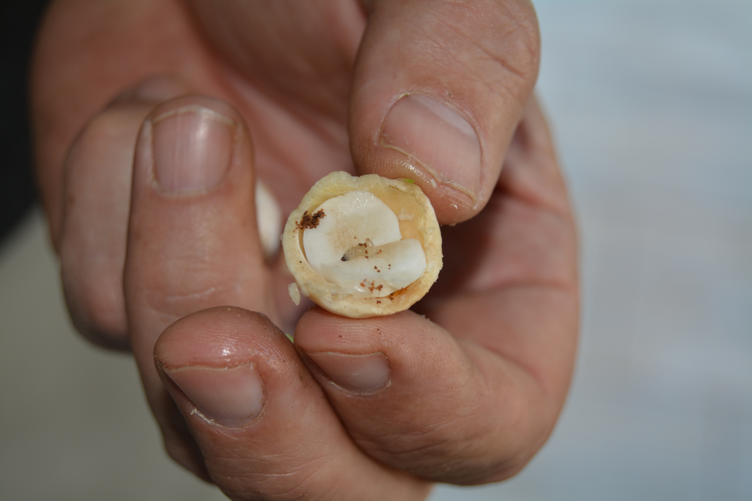 Jaff points out that they do have husk rot but he doesn’t consider it a problem as it’s a secondary issue initiated by the nut borer damage.
