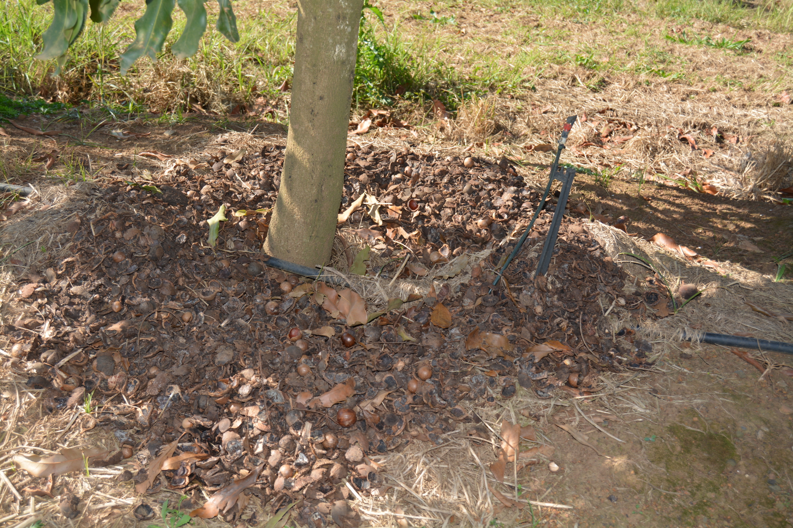 Jaff has access to a regular supply of chicken litter which he composts for 2 years with mac husks. This is used cautiously, on new trees only, because of the inherently high p levels in many of Jaff’s orchards.