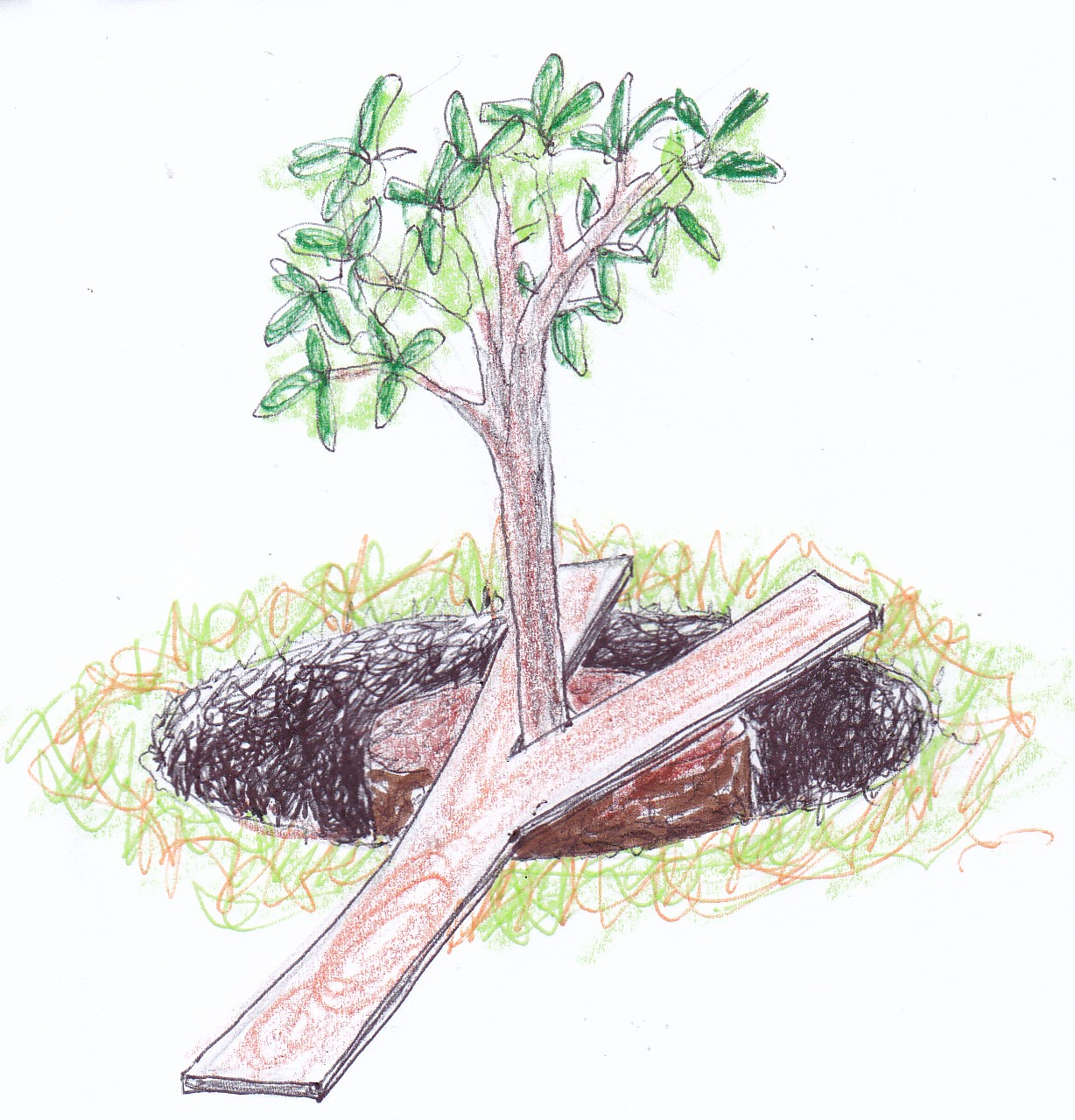 A planting plank makes sure that the trees are not planted too deep nor too shallow.