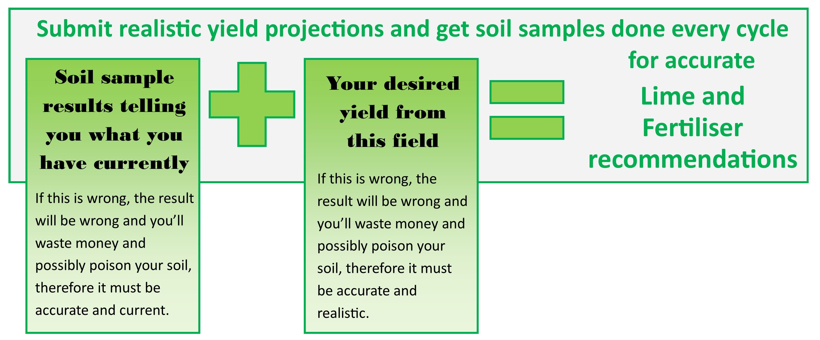 - Accurate estimates are vital. Because the FAS report not only record levels of plant-available nutrients present in the soil but also give a recommendation as to what fertilisers are to be added – and they base that on what you, as the farmer, expect from that field – your estimates must be accurate. Eg: you estimate 90t/ha but realistically that field can only produce 70t/ha, then you are overspending by about 22% on your fertiliser bill AND you are raising the aluminium toxicity (acidity) of the soil, thereby reducing the potential crop even further.