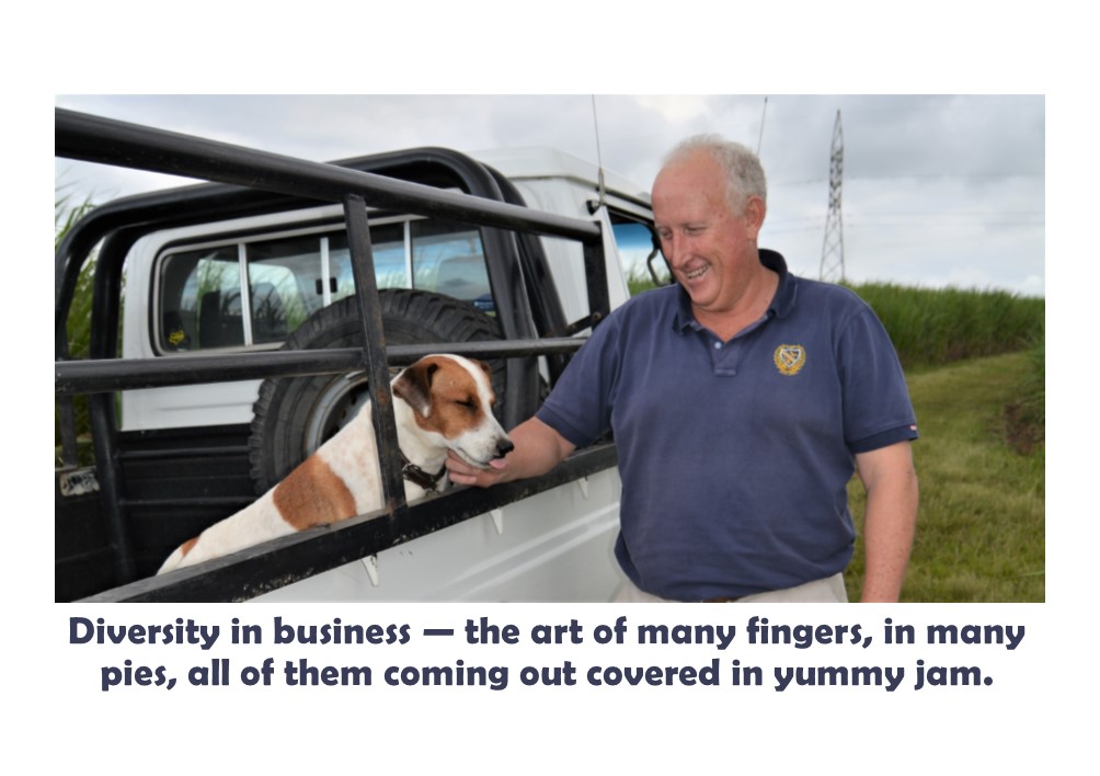Once again, we come to the end of our wonderful, inspiring and valuable time with a Top 25 sugar cane farmer. Thank you, Vince, for your time and investment. You are legend. My quote for you as inspired by Malcolm Forbes who said: ‘Diversity – the art of thinking independently, together’. I have combined this with another line that won’t leave my head: ‘Fingers in many pies”