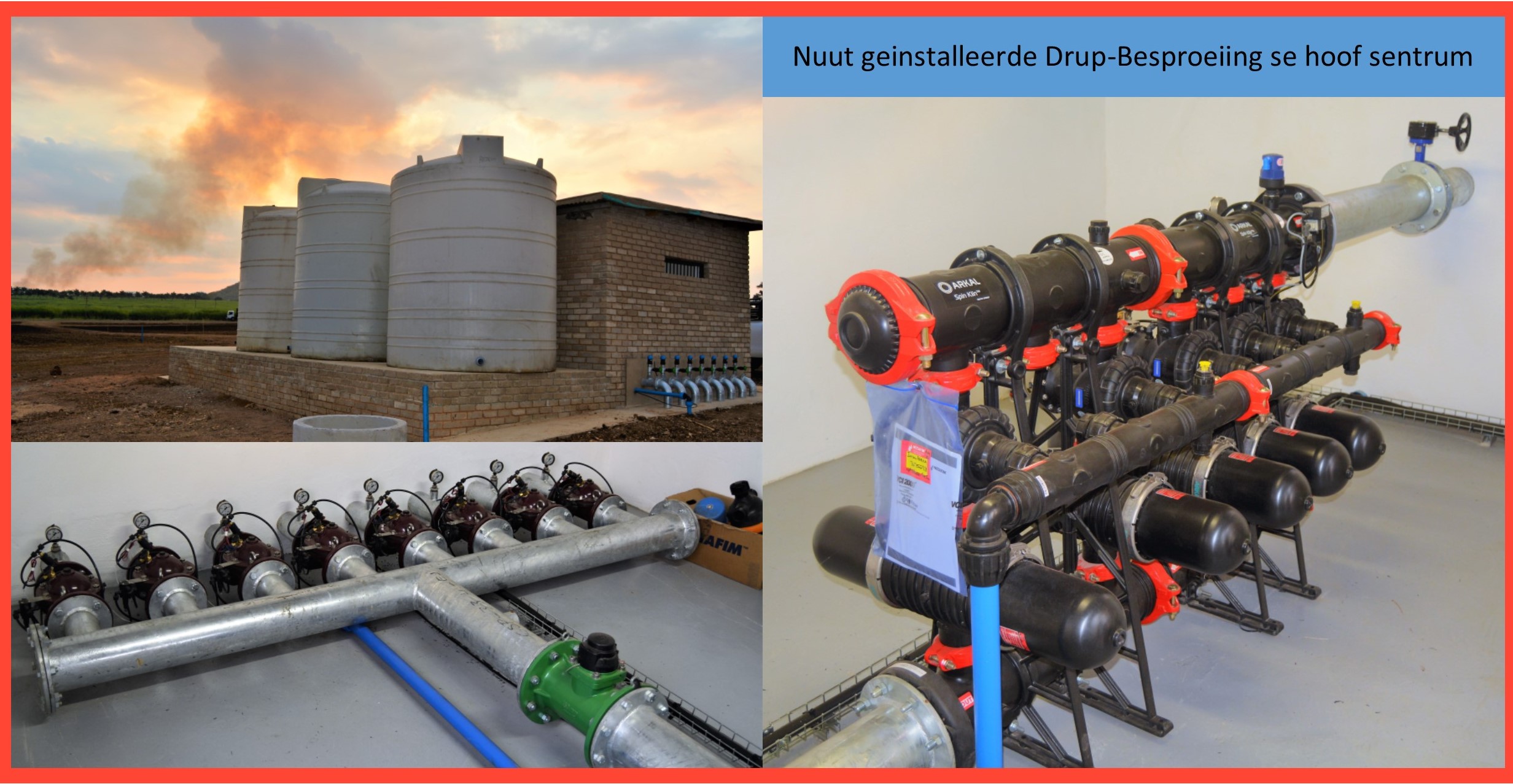 Hier is ‘n paar foto’s van die pomphuis. Die ondergrondse vogmeters stuur data na ‘n toep (app) toe en die boer kan daarvolgens die week se besproeiing skeduleer op die rekenaar wat in die pomphuis geinstalleer is. Dis nou tegnologie op ‘n ANDER vlak!